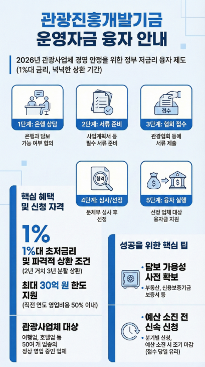 | 관광진흥개발기금 융자 안내 연리 1%대 초저금리 | 2026년 운영자금 신청 핵심 가이드 |