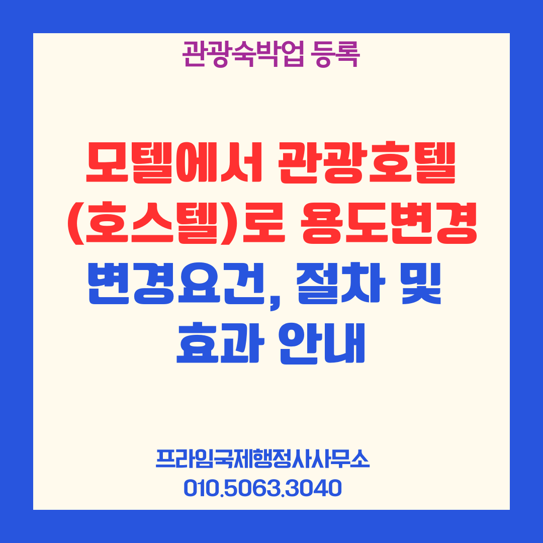 저는 그간 많은 숙박시설 운영자분들과 상담하면서 가장 자주 받는 질문이 바로 '모텔이나 여관을 호스텔이나 관광호텔로 변경하는 방법과 절차' 였습니다. 이번 글을 통해 이러한 용도변경 과정의 핵심 내용을 명확하게 정리해드리겠습니다.
